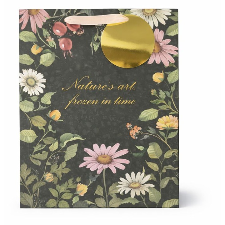 - Punga cadou inclusa, cu design elegant si detalii aurii, dimensiune 32,5 x 26,5 cm