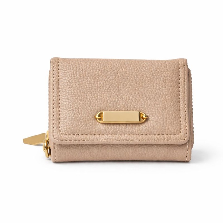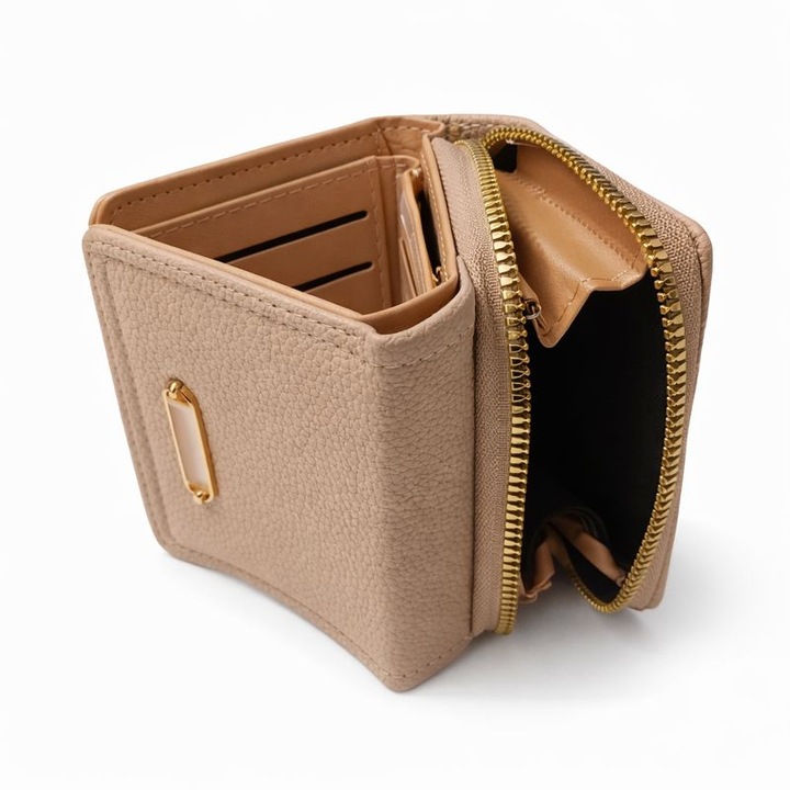 - Portofel bej cu fermoar si spatii pentru carduri, dimensiune 11 x 9 x 5 cm
