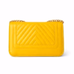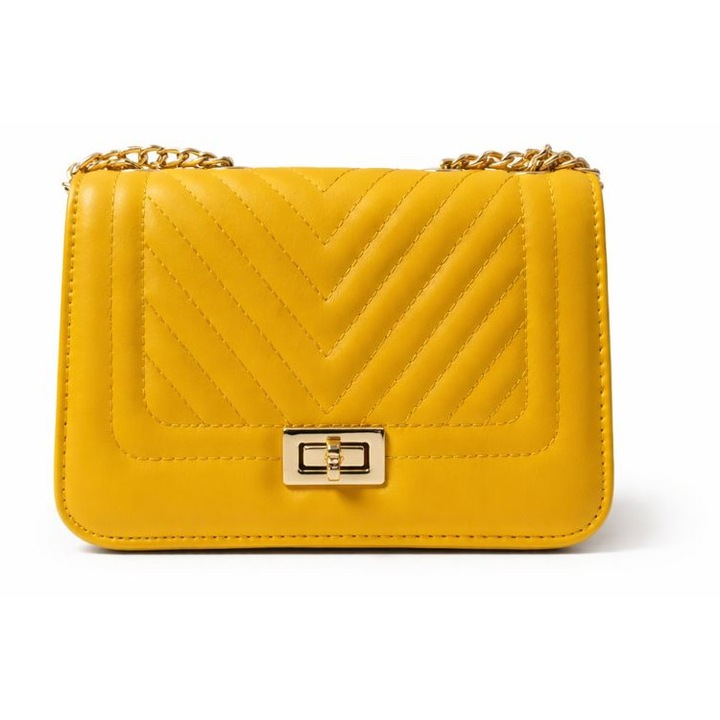 - Geanta moderna culoare galben mustar, cu lant auriu si compartimente practice, dimensiune 19,5 x 14 x 8 cm