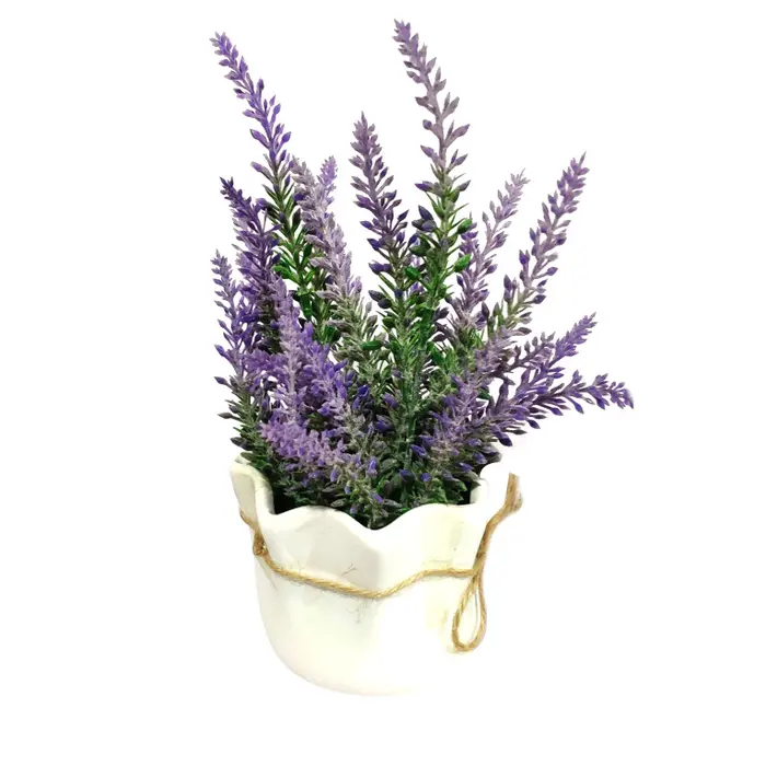 Acesta este alcătuit din flori artificiale (lavandă), intr-un ghiveci alb ceramic.