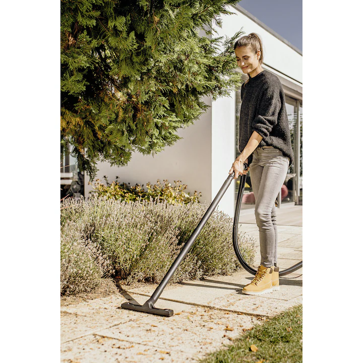 WD 3 V-17/4/20 este puternic si eficient din punct de vedere energetic, cu un consum de numai 1000 W. Atat aparatul, cat si furtunul de aspirare si duza de podea sunt perfect adaptate pentru a obtine cele mai bune rezultate de curatare a murdariei uscate, umede, fine sau grosiere. Aspiratorul umed si uscat impresioneaza prin designul sau compact si prin recipientul robust din plastic de 17 l, cablul de 4 m, furtunul de aspirare de 2 m si sacul sau de filtrare din fleece. Datorita filtrului cu cartus dintr-o singura bucata, este posibila aspirarea atat a murdariei umede, cat si a celei uscate, fara inlocuirea filtrului. Functia de suflare este utila pentru curatarea zonelor greu accesibile. Furtunul se depoziteaza prin fixarea acestuia pe capul aparatului, economisind astfel spatiu. Cablul poate fi depozitat pe carligul prevazut in acest scop, tuburile si duzele de podea pe bara de protectie. Sistemul de inchidere „Pull & Push” permite deschiderea si inchiderea simpla a recipientului. Manerul aspiratorului poate fi indepartat, iar accesoriul poate fi conectat direct la furtunul de aspirare. De asemenea, uneltele sau piesele mici pot fi asezate in zona de pe capul aparatului. Manerul de transport cu forma ergonomica permite un transport confortabil.