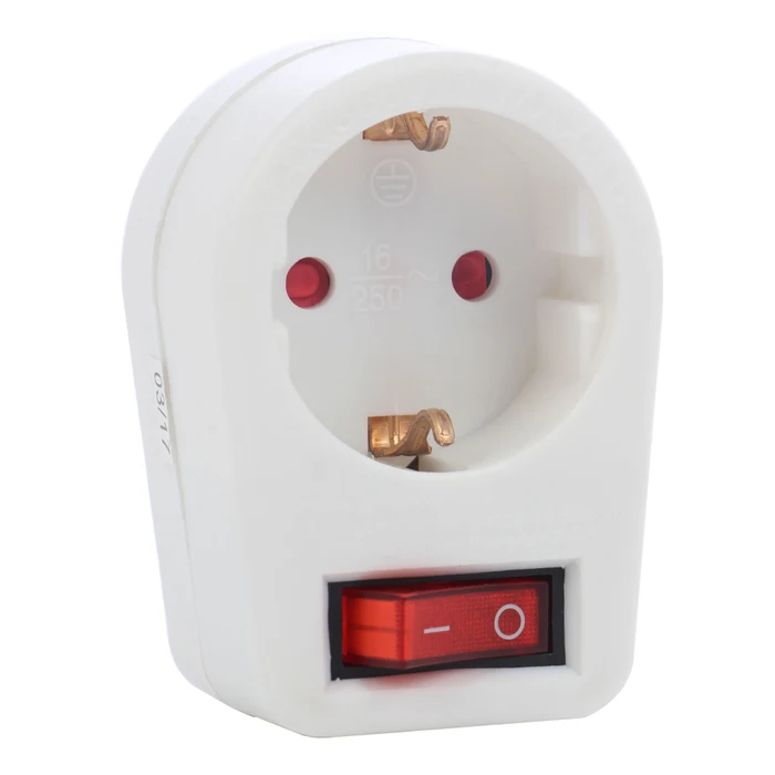 Acest adaptor funcționează la tensiunea de 220-240V, suportând un curent maxim de 16A, având o frecvență de 50 Hz și este confecționat din plastic alb.